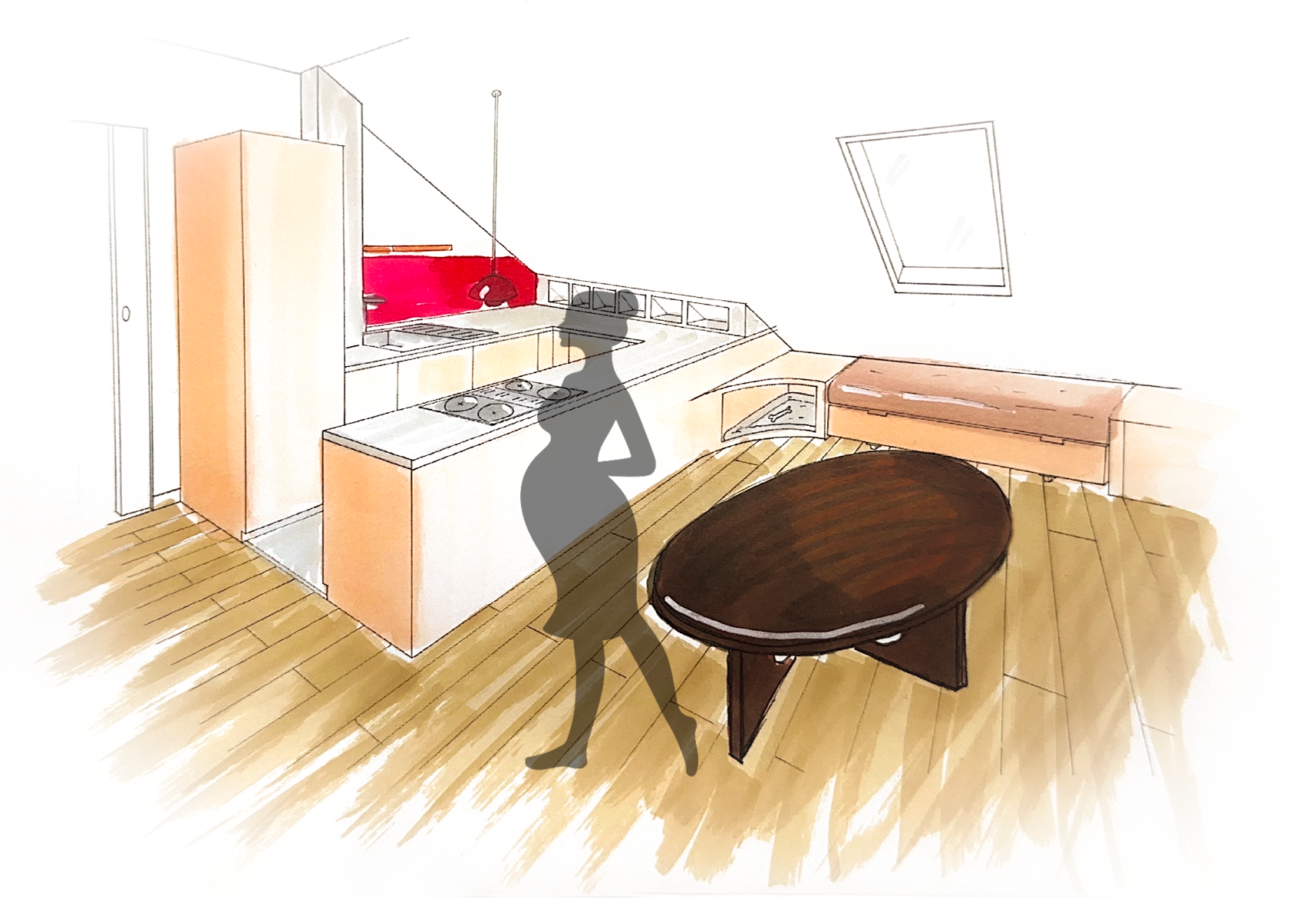 Croquis - cuisine salle à manger